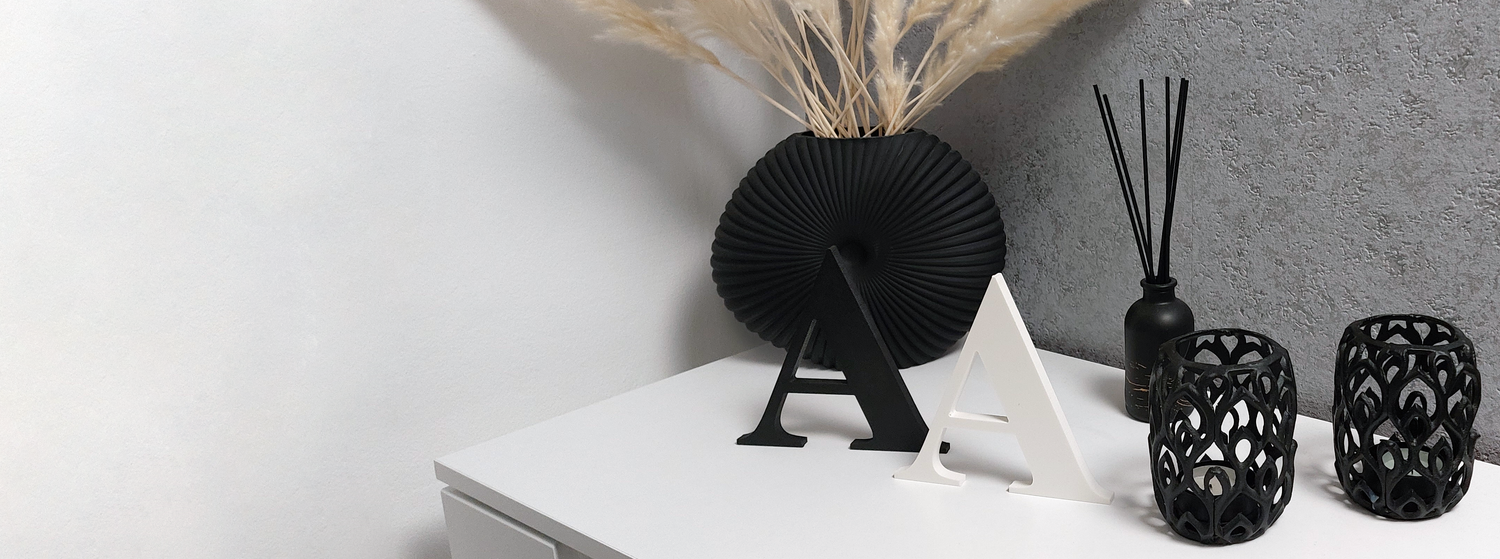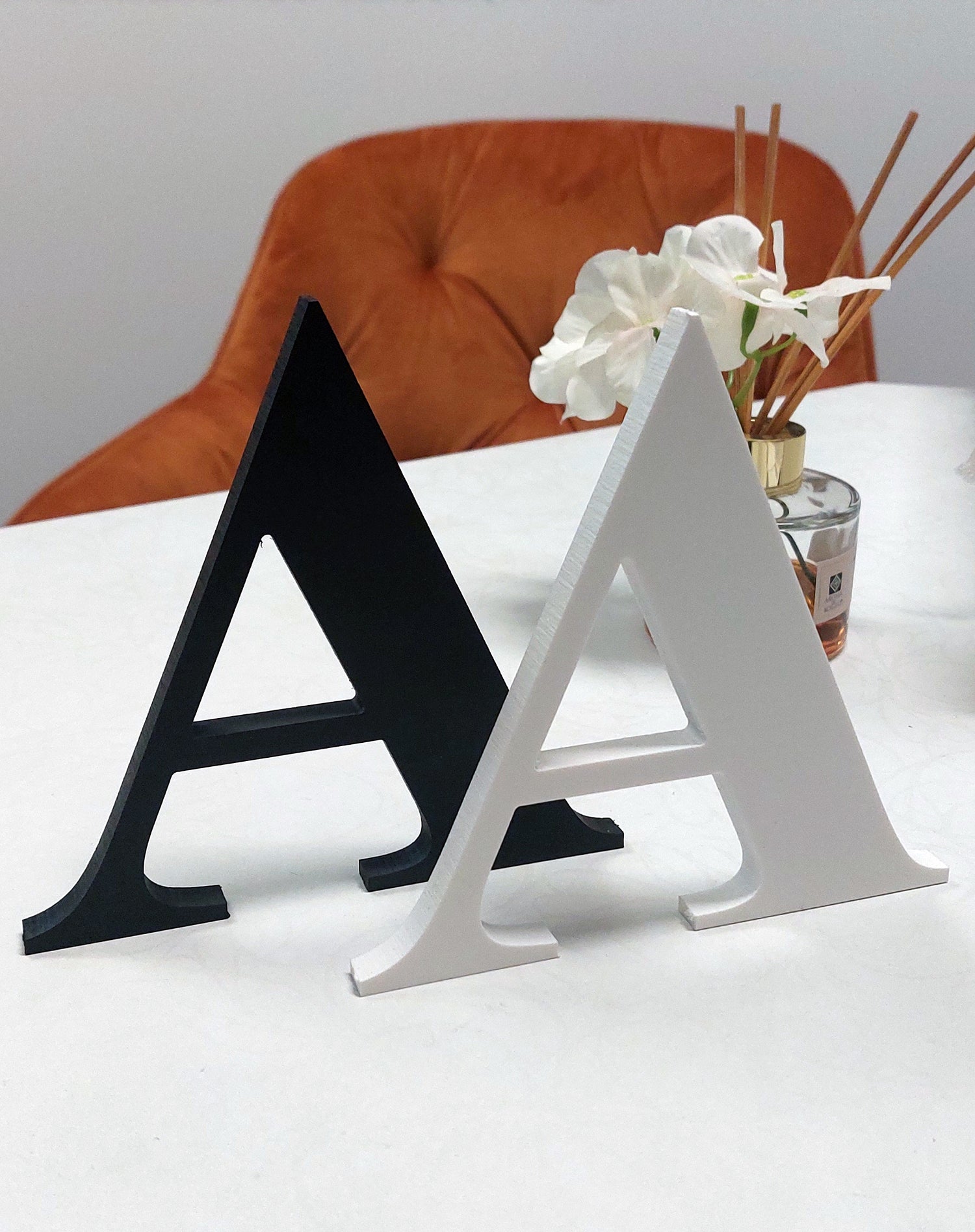Erhältlich als Stand- oder Wandbuchstaben, wahlweise in schwarz oder weiß, in Größen von 10cm bis 50cm und in drei verschiedenen Schriftarten.
